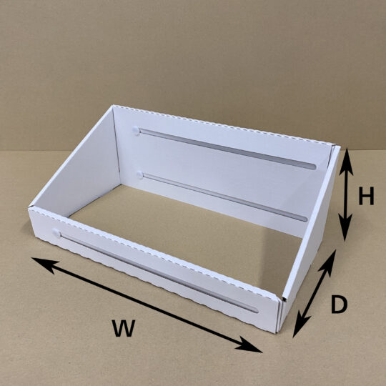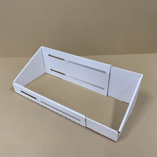 カウンターや棚に置く段ボール什器のスライドが出来るタイプになります。