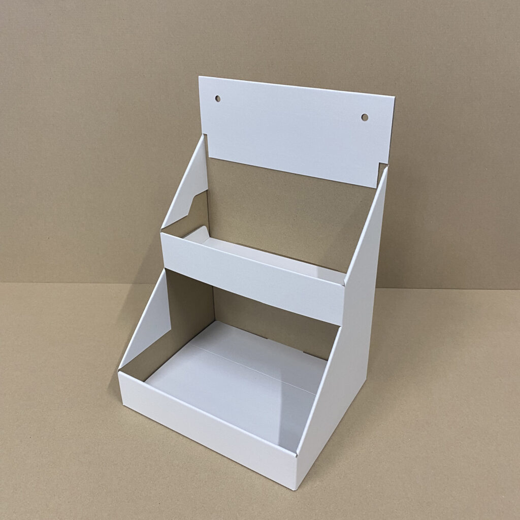 吊り下げ機能が無いパッケージやボトル容器などは、ハンガー2段什器があれば