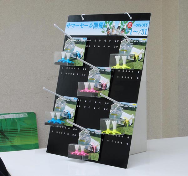 少ないスペースで商品を陳列できることで重宝されています。バッケージに合わせて専用で作るため、使い回しがきかず、一度使い終わったら廃棄になってしまうことが多い什器です。