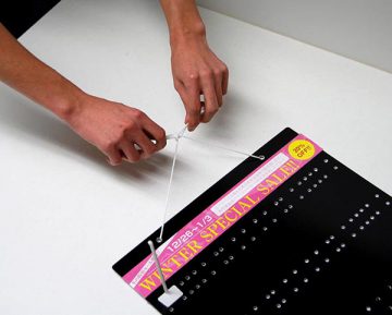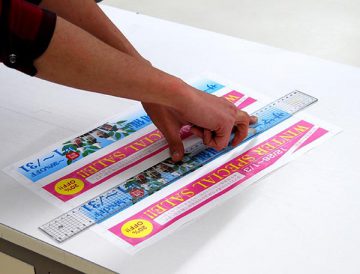 広告レーンにプリンターで出力した広告をスライドさせればぴったりのキャッチフレーズが簡単に差し替えできます