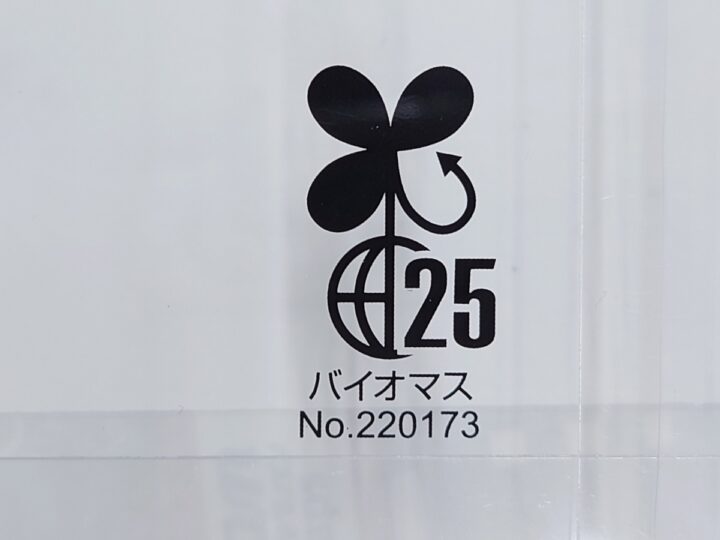 ただ、透明な素材にしか出せない美しさがあるのも事実です。環境にも配慮したいけれど、透明な素材はデザイン面で譲れない、そんな場合はバイオマスPETを使用して印刷デザインにバイオマスマークを配置し、環境に配慮していることをアピールしましょう。今回のお客様は環境に配慮したカフェを運営されており、バイオマスPETをご採用いただきました。