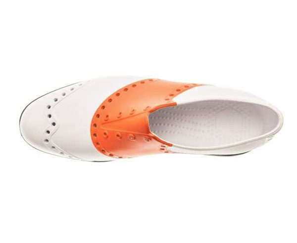 見かけは普通のゴルフシューズっぽく見えますが素材がクロックスのサンダルのような柔らかいゴムでできています。