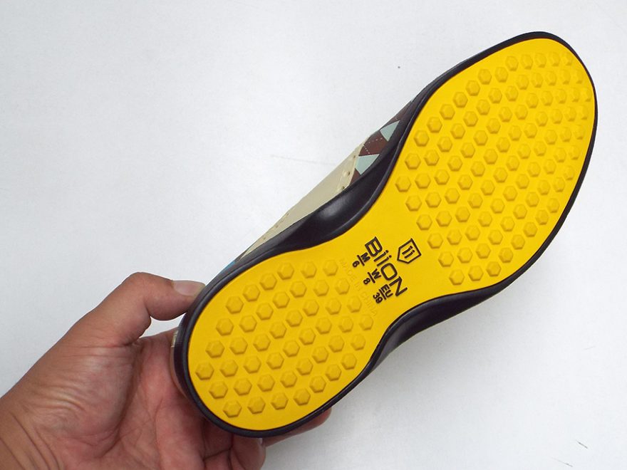 六角形の凹凸ぼつぼつでしっかりグリップしてくれそうです。“蜂の巣”形状:六角形突起を備えたヘクストラグリップソールと言うそうです。