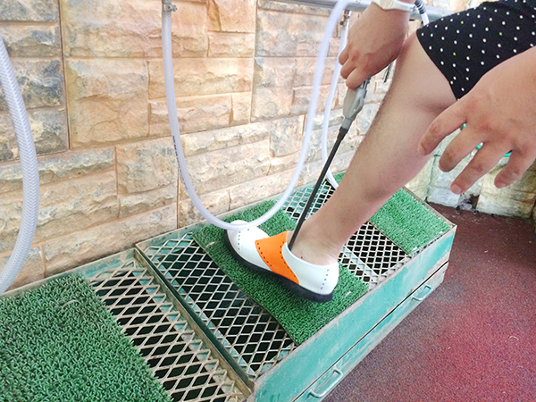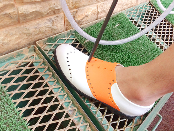 実際ですと、終了後はエアーガンで靴に付いた土や芝を落とすのですが、このバイオンでは先に水洗いできます。涼しいーーーーーー。