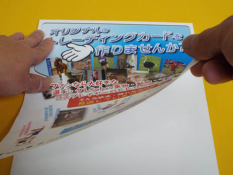 ①POPの片面に両面テープを貼り、剥がします。