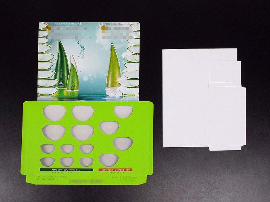 まず、大小ある商品の並びを考え、商品をより良くきれいに見せるため、下の台になる部分に固定させるように支える台を入れました。