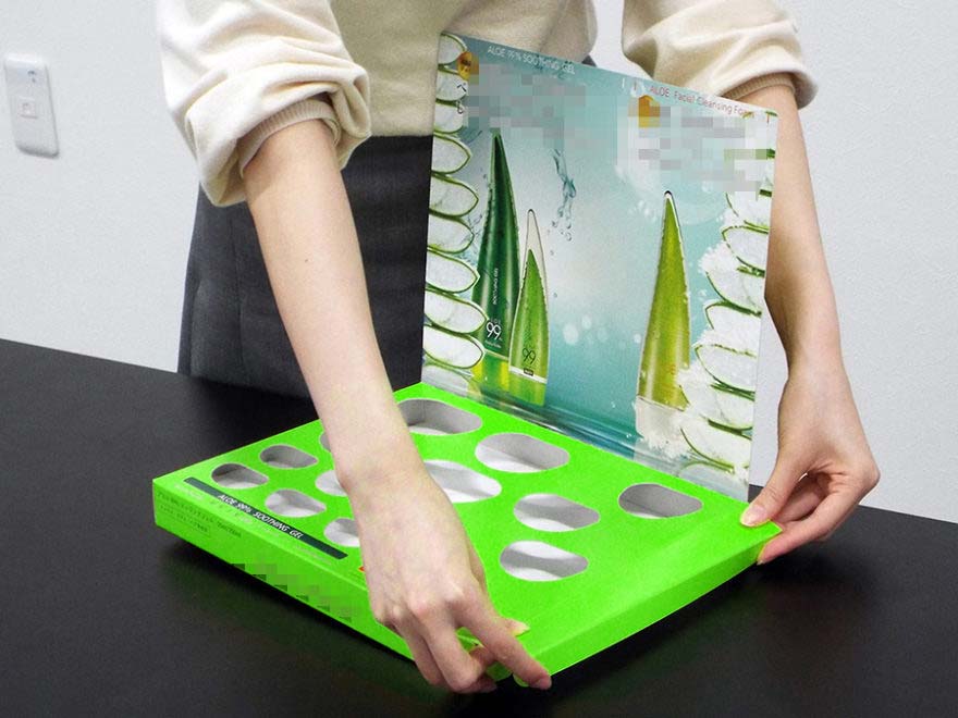 また、店頭で什器の組み立てをすることも考え、組み立てやすい形状にて提案させていただきました。