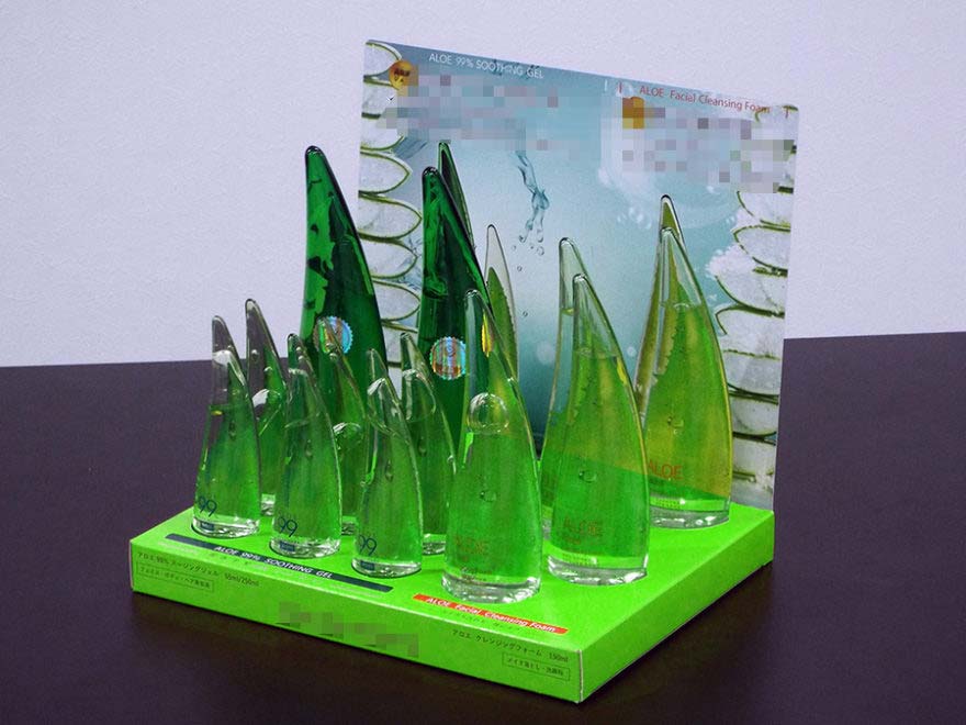 そして、商品のアピールが什器の印刷面にできることと、実際の商品を手に取ることが出来ることでで、商品の認知度があがり購買意欲に繋げることができるのがカウンター什器です。
