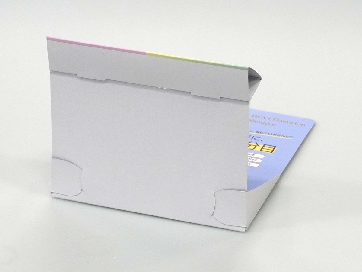 メリットとしては、紙製のため材料代が「安い」! 紙1枚のため無駄な工程がなく納品までが「早い」!です。