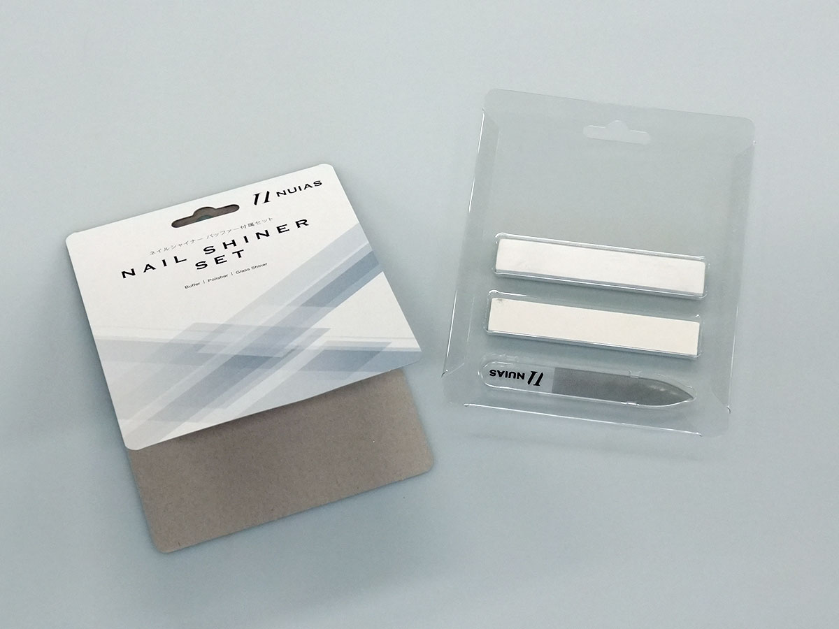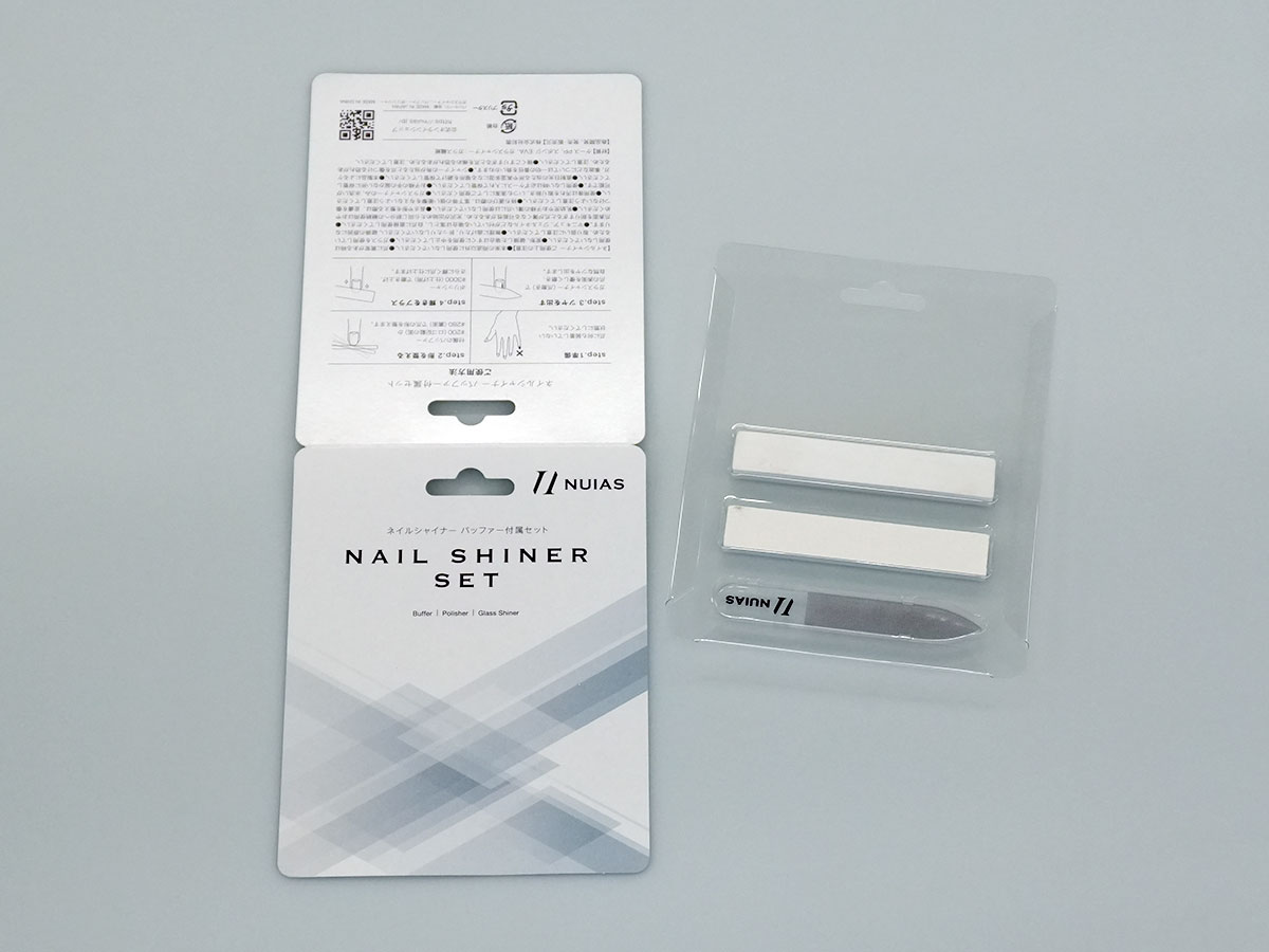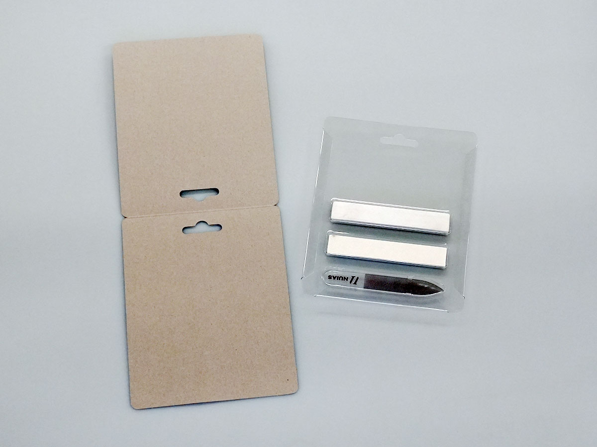 また、台紙についても工夫が可能です。一般的なブリスターでは両面印刷の台紙を使用するケースが多いのですが、台紙を二つ折り形状にすることで、片面印刷のみで両面にデザインを入れることができ、コストを抑えながら見栄えを確保することができます。