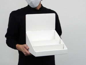 超大型ダンボール什器なのにコンパクトになって輸送費コストが1/4に削減