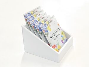 スプレー缶を12本陳列する、細かい仕切りもお任せのカウンター紙什器