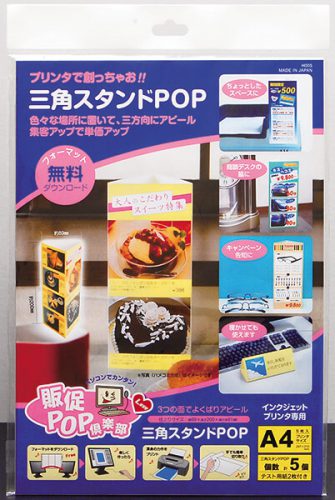 プリンターで三角ポップを15分で作ろう、POP用紙「三角スタンド」