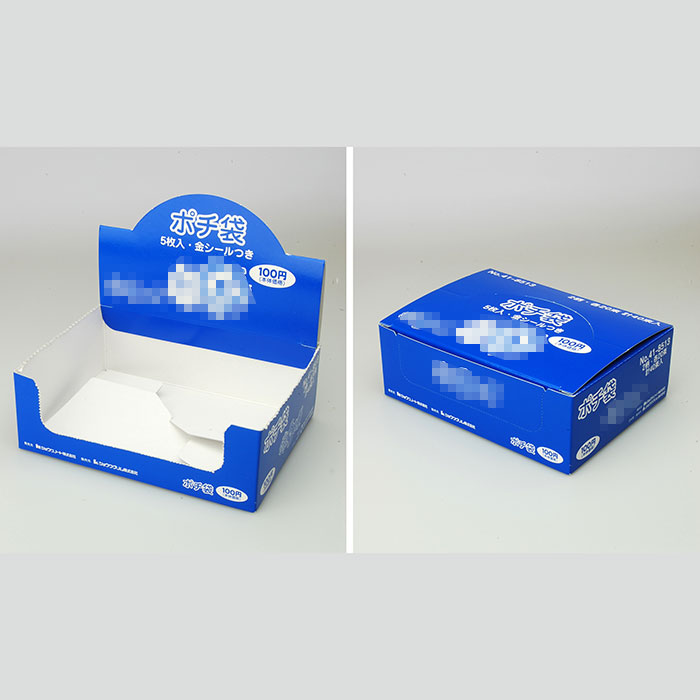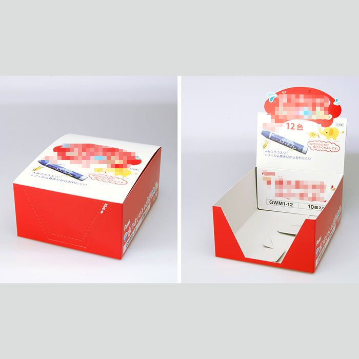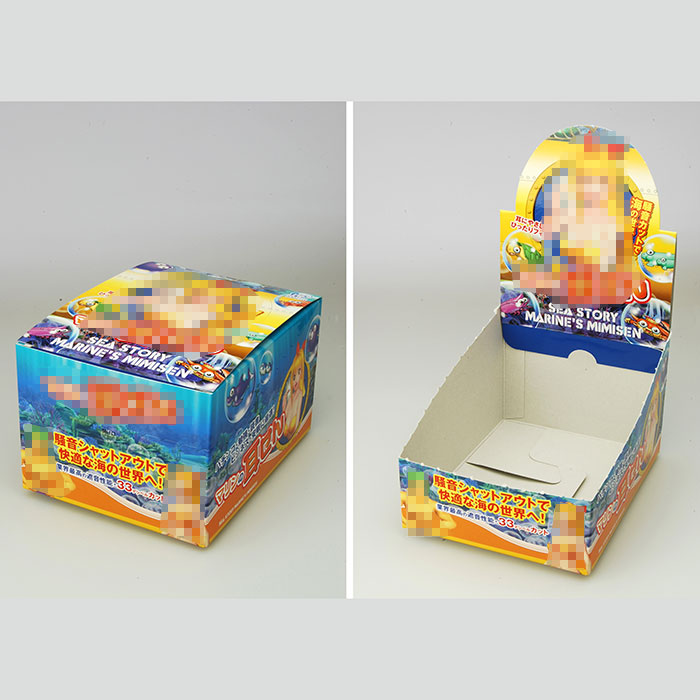 ロゴやキャッチコピー、キャラクターなどが入るPOP付きなので店頭で陳列箱また、展示箱としてもしっかりと商品をアピールできます。