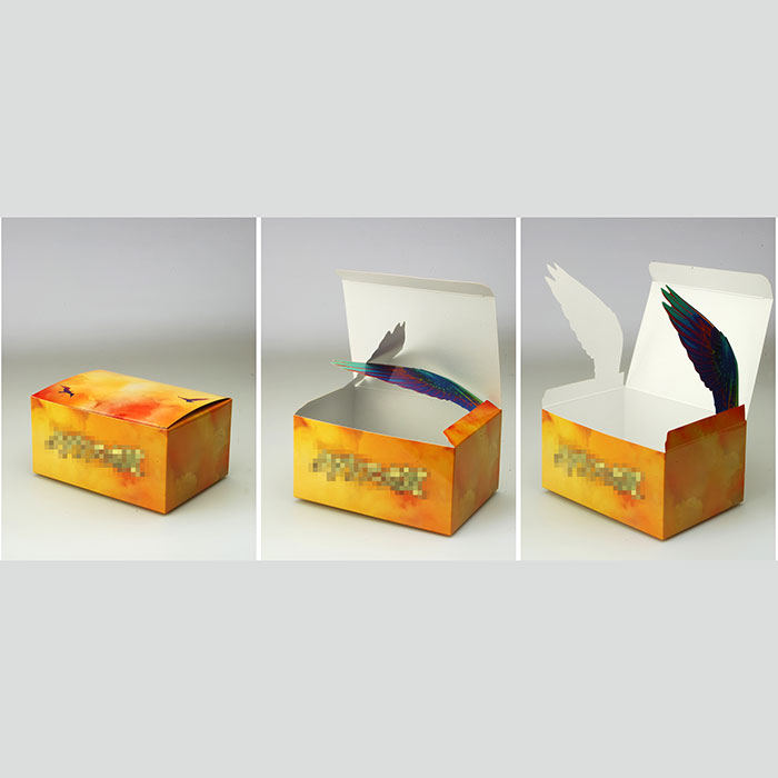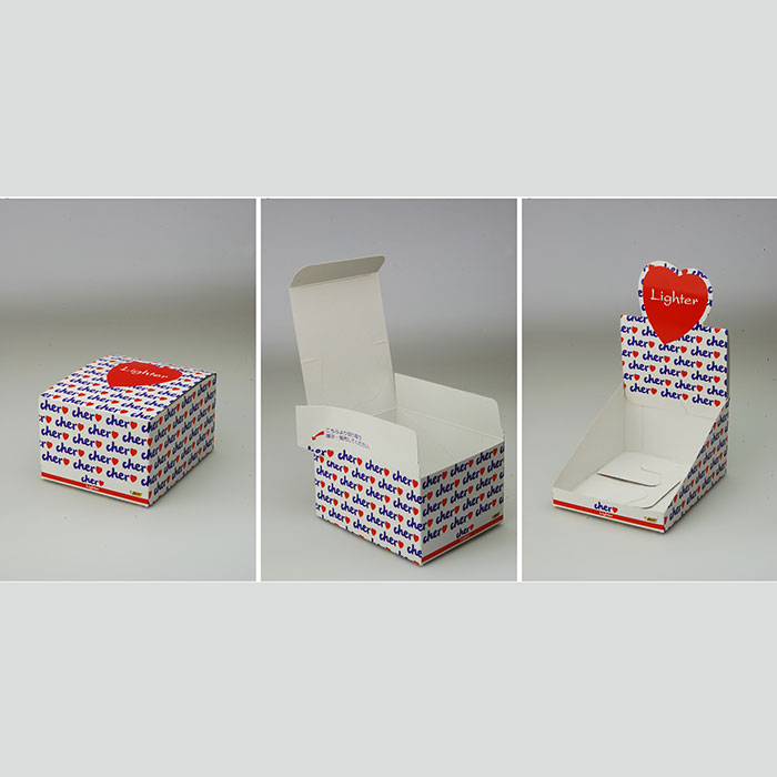 ポッアップする部分をハートの形やキャラクターのデザイン形状でミシン目の形を合わせることで、オリジナリティ溢れた、訴求効果の高いディスプレイボックスの完成です。