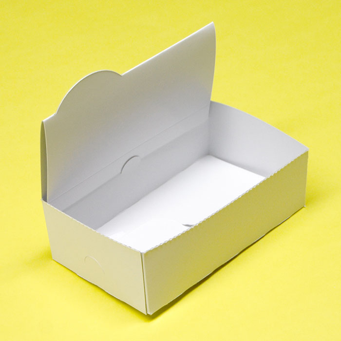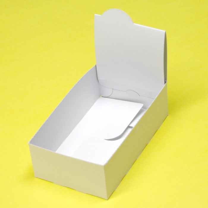 中に入る商品パッケージをしっかり見せたい場合は、ボックスの手前面にミシン目を入れて、カットします。