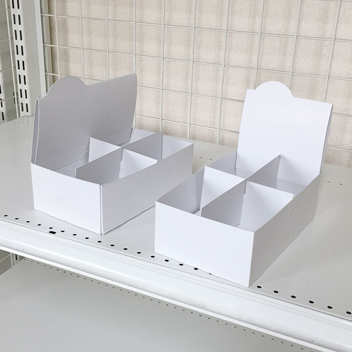 店頭の棚スペースに合わせて使用できるディスプレイボックス