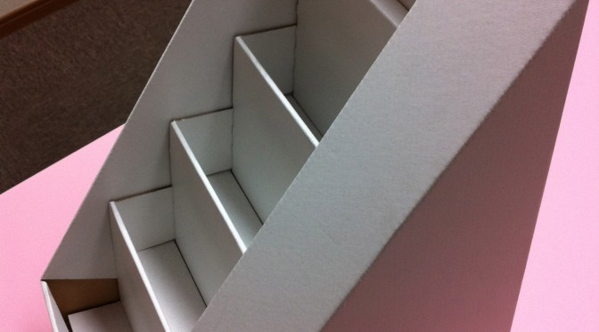 よく!ひな壇芸人とか言われる芸能人がいらっしゃいますが僕らの業界では「ひな壇什器」と呼ばれる什器がございます。ダンボール原紙にて、こんなひな壇什器を制作してみました!単純に商品を置く所がひな壇なんですがね〜