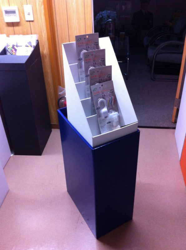 更に、下段の段ボールフロアー什器(紺色)も付属させますと、お店でこのまま空いているスペースに置いて販売する事が、簡単に安価に出来ます!