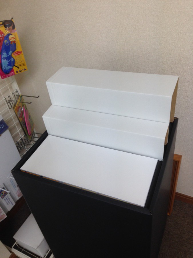 置く商品は結構重みがございますので、ダンボールにて頑丈に制作させて頂きました。