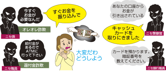詐欺をする犯人側の騙しのテクニックも巧妙化し警察官、弁護士などの役柄を複数で装ったり、あらかじめ名簿を入手しておき、家族構成や勤め先を調べてから犯行におよぶ場合もあり、多様化してきいます。