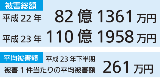 件数は数年前と比べて減少傾向にある振り込め詐欺ですが、1件当たりの被害額が高額化しています。