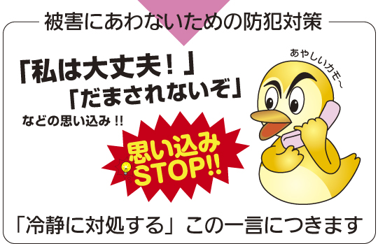 簡単なことですが、この「冷静に対処する」ができてれば【振り込めサギ】の被害はゼロになります。
