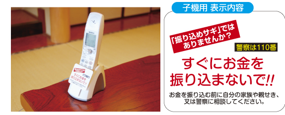 この電話台は振り込め詐欺への注意を喚起するものです。必ず振り込め詐欺を防止できるものではありません。