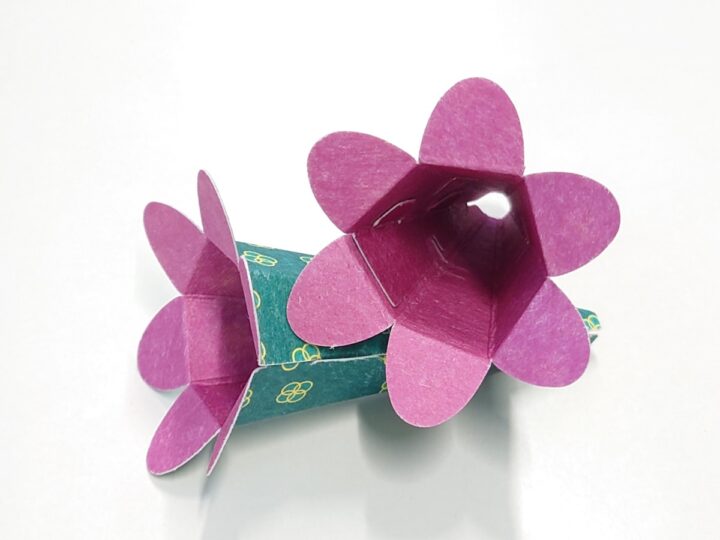 今回は、ゴルフ用品のメーカー様よりご要望いただき、ティーの販促品パッケージを製造しました。画像の通りかわいい立体のお花型となっており、手にしたエンドユーザーを幸せな気持ちにする逸品に仕上がりました。お花の中心に販促品のティーをセットし、まるでお花を贈るように販促品を手渡すことができます。