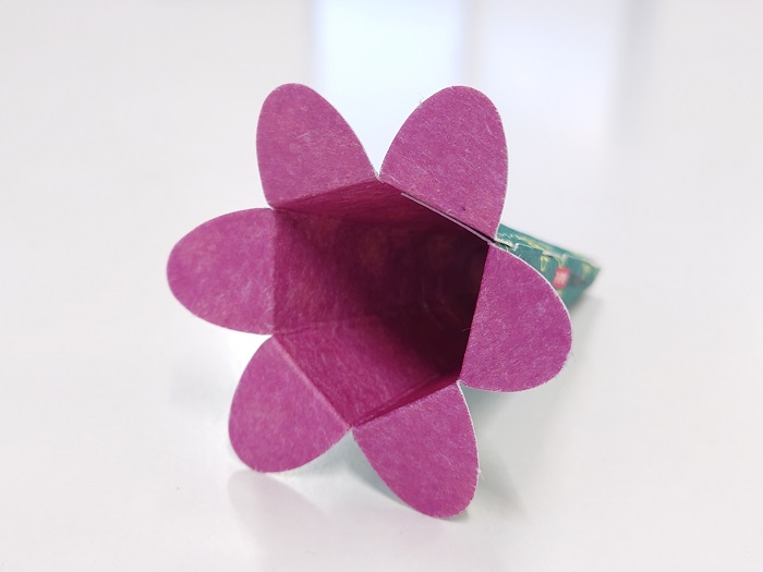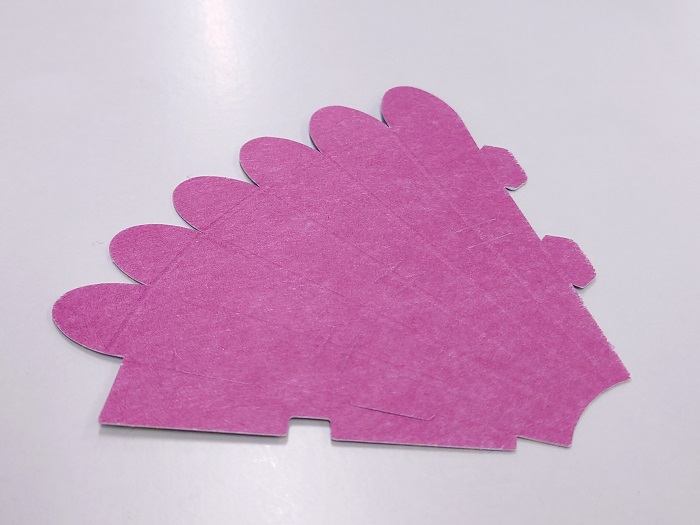 今回は、ゴルフ用品のメーカー様よりご要望いただき、ティーの販促品パッケージを製造しました。画像の通りかわいい立体のお花型となっており、手にしたエンドユーザーを幸せな気持ちにする逸品に仕上がりました。お花の中心に販促品のティーをセットし、まるでお花を贈るように販促品を手渡すことができます。