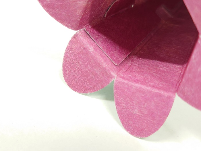紙厚が薄い展開の和紙風ファンシー用紙ですが、このように工夫をすれば、板紙と同様に様々な形状のパッケージを制作可能です。1個売りのお饅頭や羊羹など、和菓子パッケージなどにいかがでしょうか。ちょっとした贈り物に添えると華やかですので、レジ横に設置してついで買いを狙うのもよさそうです。