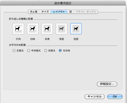 「行内」に設定さていると自由に移動できないため、「行内」以外を選択します。