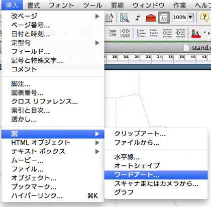 [挿入]-[図]-[ワードアート]を選択しテキストを入力します。