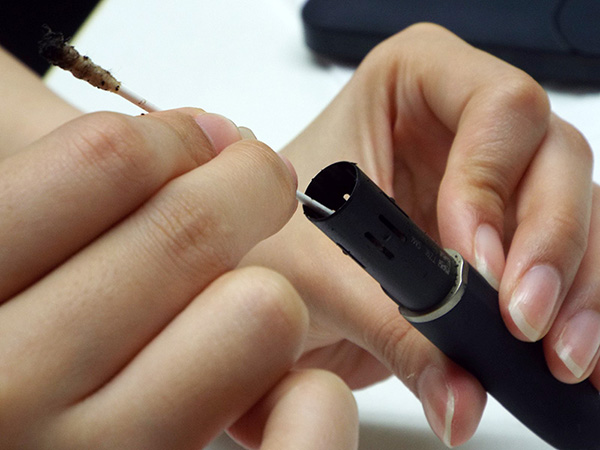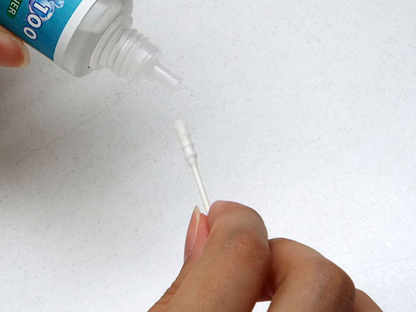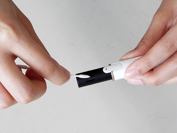 クリーニングステックの棉部分にクリーナーを適量塗布して電子タバコの汚れが付着しているところを優しくクリーニングするだけです。