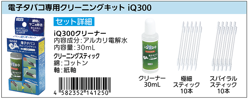 電子タバコ専用クリーニングキット「iQ300」発売開始しました。