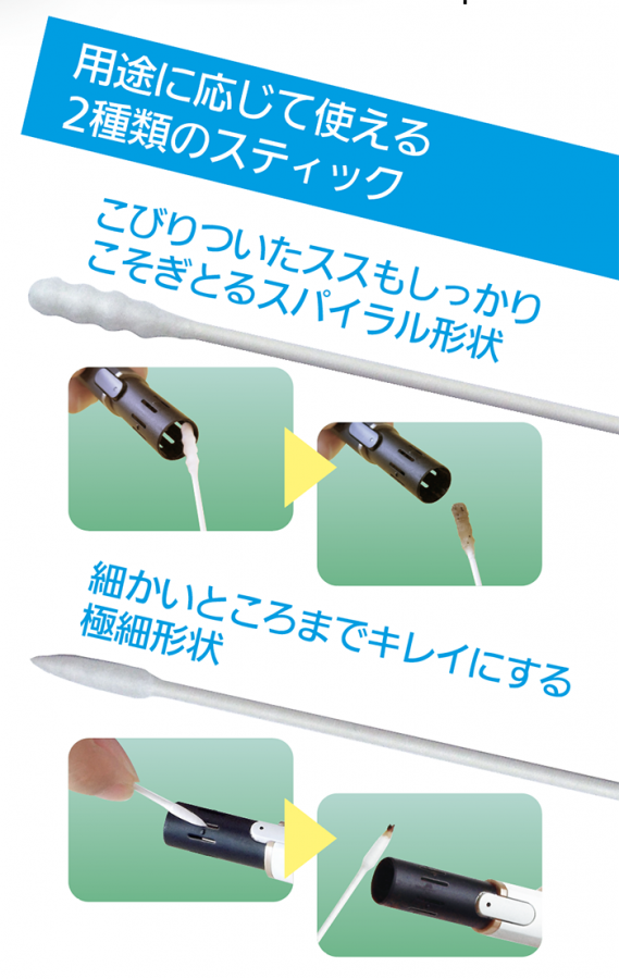 細かい部分はクリーニングスティックを変えてクリーニングします