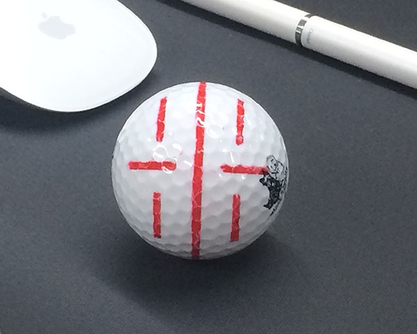 先日ラインマーカーを購入してから、使用する全てのゴルフボールには、ラインマーカーで紅線(ベニせん)を360度書いています。目印となる線の「道しるべ」に慣れてしまい、線がないと構えて下を向いた際どこの方向に振り抜いていいのかわからなくなってしまいました。なので、全てのボールに線が入っています。