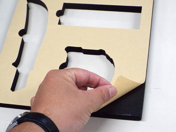 ウレタン4枚構造になっていて、最下層は箱の底面に貼り付け、上3層とも抜きの違う形状になっています。