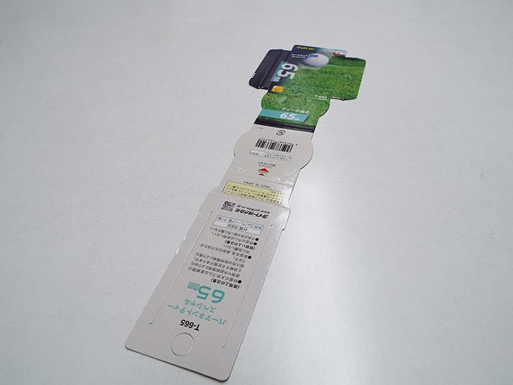 特殊台紙の形状で、商品を挟み込み取れないようにしました。