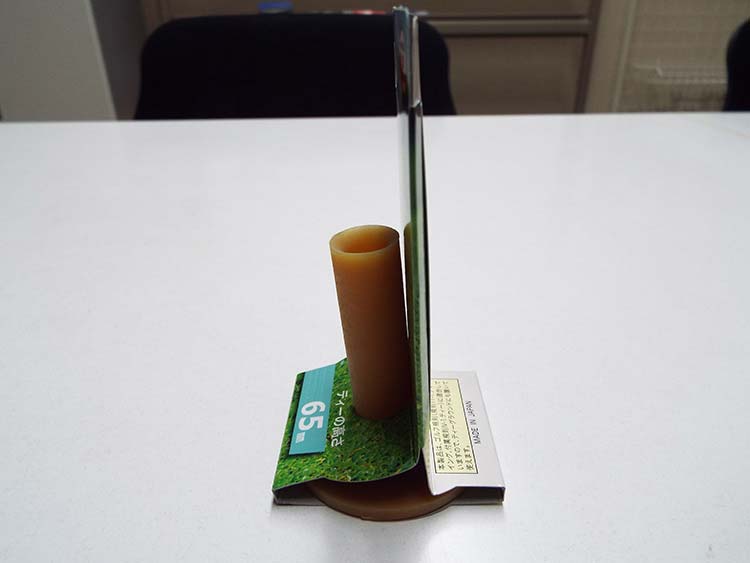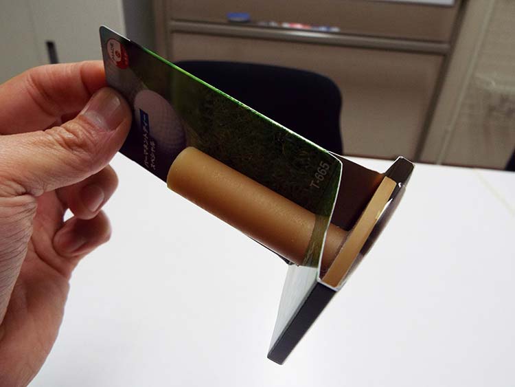 製品を挟み込みまして、裏面の切れ込みに差し込むと、