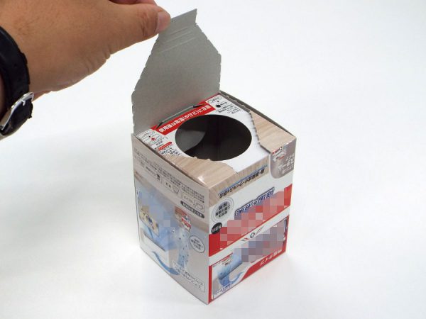 ゴミを出さないように、ミシン目の蓋は本体の化粧箱から離れない設計にしています。