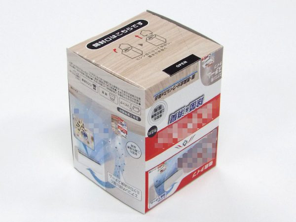 商品を箱から出さないで使用する化粧箱を設計しました。
