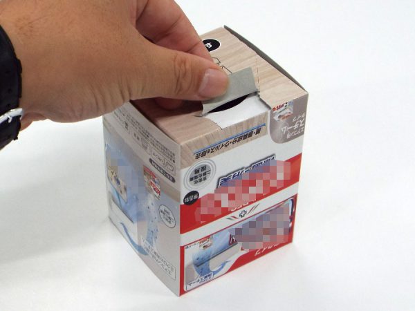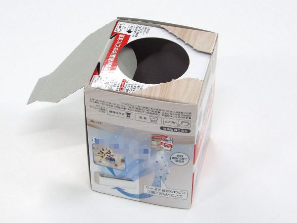 ゴミを出さないように、ミシン目の蓋は本体の化粧箱から離れない設計にしています。