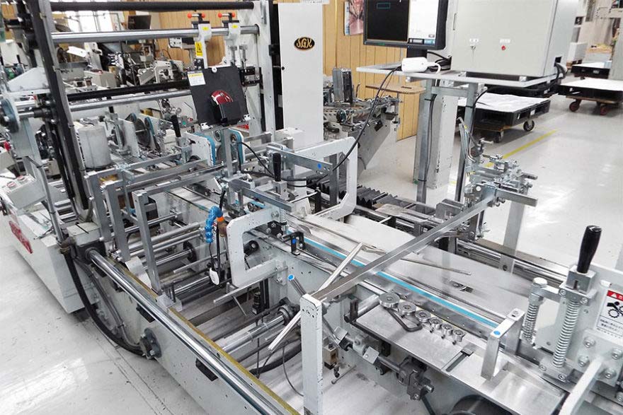 特別に大きかったり、変わった形でない限り世にある化粧箱の貼りはほとんどが自動化で機械です。弊社でも貼り加工は機械で行っています、曲がらずに貼れるように調整することは簡単な作業ではないのですが、お客様の品質のためしっかりとお仕事しています。