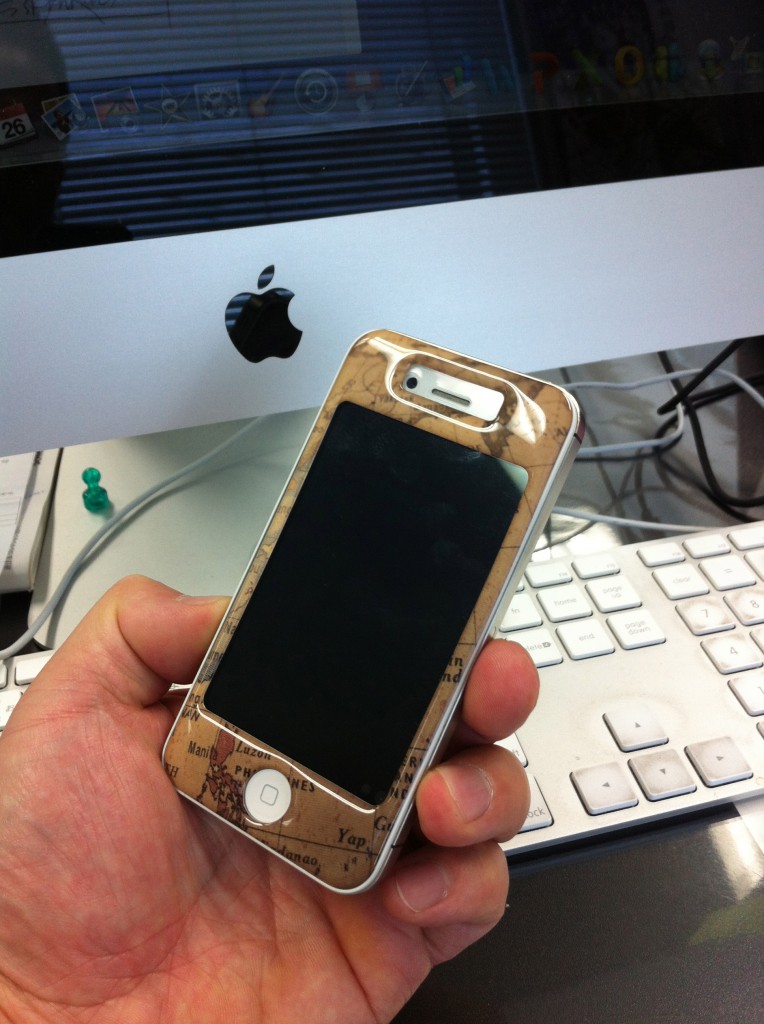生前、スティーブ・ジョブズさんはiPhoneはカバーなどは付けないで裸もまま使うものだと言われておりましたが日本人はカバーやシールを付けたりストライプ付けたりとカスタマイズしてしまうんでスティーブ・ジョブズさんはお嘆きになられるかと思いますが・・・こんなシールを創ってしまいました。