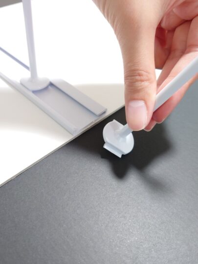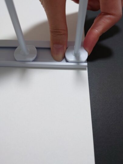こちらのクリップフックは、上下の返しではなく上から下にひっかけるフック式ですので、フック位置を変えたいときに台紙が破れてしまう心配もありません。