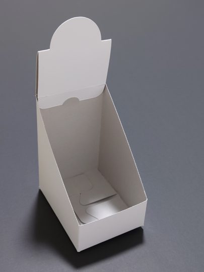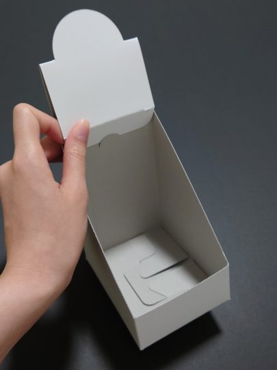 お客さんへアピールするためにお金をかけて作った什器、せっかくなら使ってほしいですよね。その点、こちらのディスプレーBOXはよく使用される形状でもありますので、お店の方も取り扱い楽々です。ミシン目をカットするだけで直感的に組み立て可能となります!