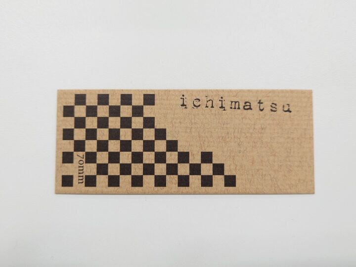 こちらの紙は最大で90k(約0.15mm)までと薄手でしたので、台紙として使用するには薄すぎるため、アングルカラー+コートボール+アングルカラーの3枚合紙で製作。お客様デザインで、寄木細工イメージのモダンな台紙が出来上がりました。