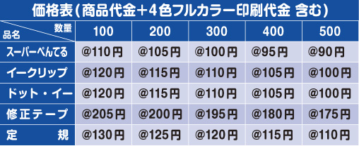 ※白インク使用の場合は、上記価格表に別途料金がかかります。
