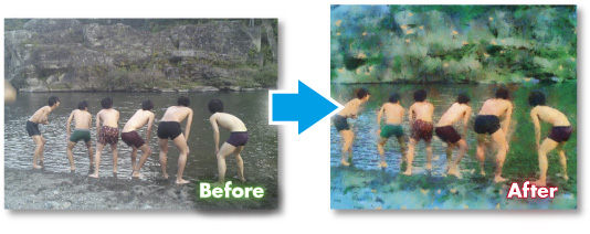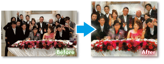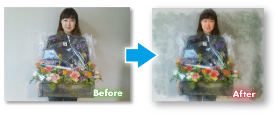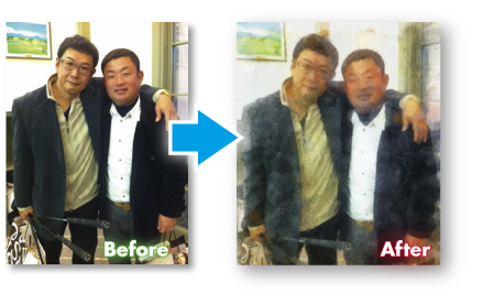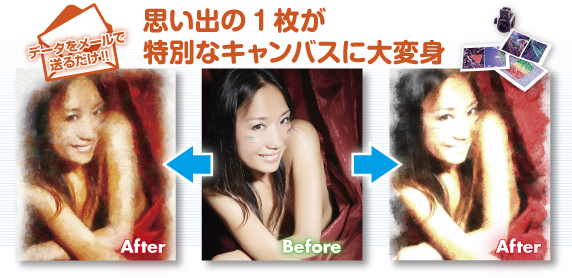 デジタルカメラや、携帯電話で撮影したデータを、油絵風に編集して、キャンバスに直接プリントします。贈り物として活用してみませんか?